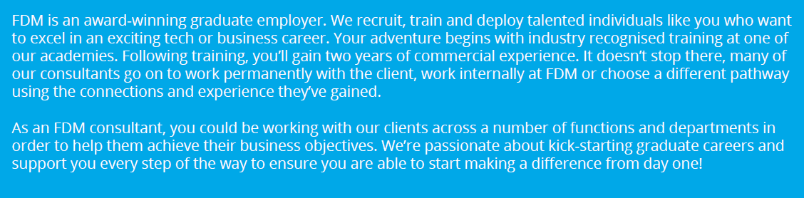 For more information about FDM Group and its Graduate Programme, please refer to the website and attachments below.